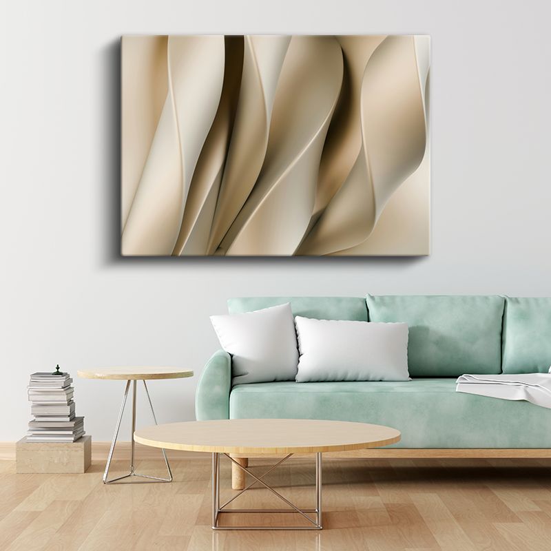 Zarif Dalgalar - Bej Tonlarında Minimalist Soyut Kanvas Tablo
