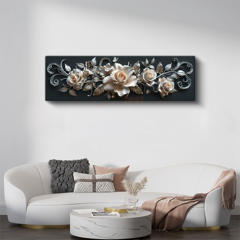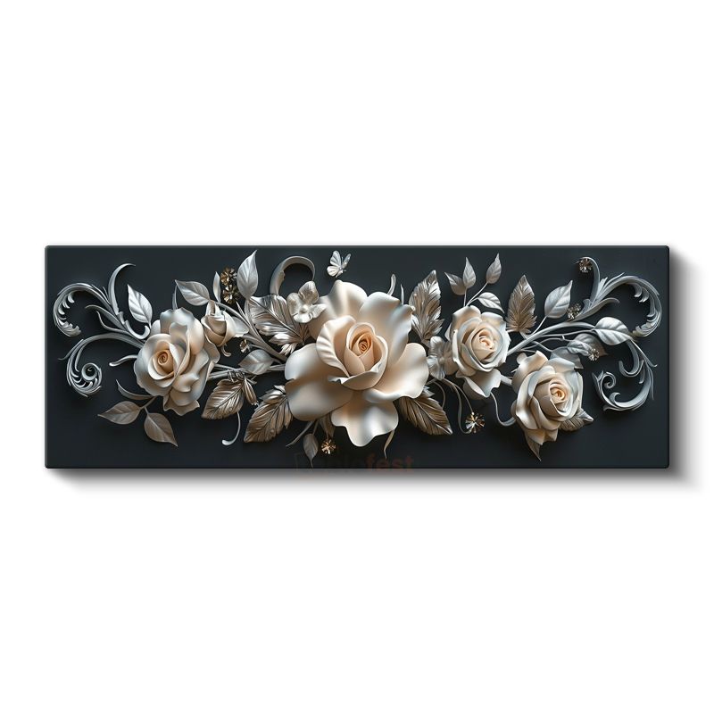 Zarif Güller - 3D Kabartma Efektli Krem Rengi Çiçek Kompozisyonu Kanvas Tablo