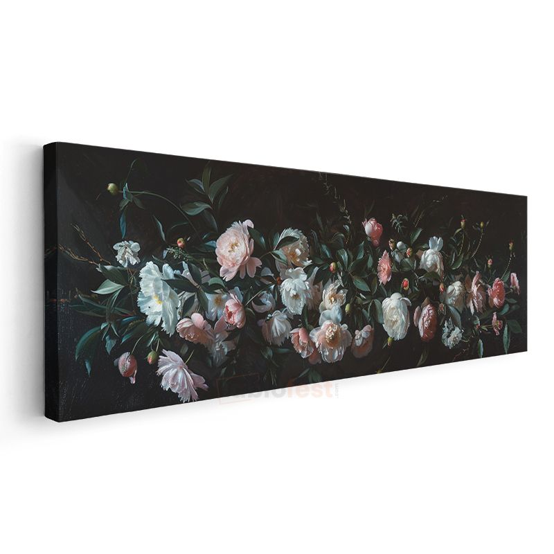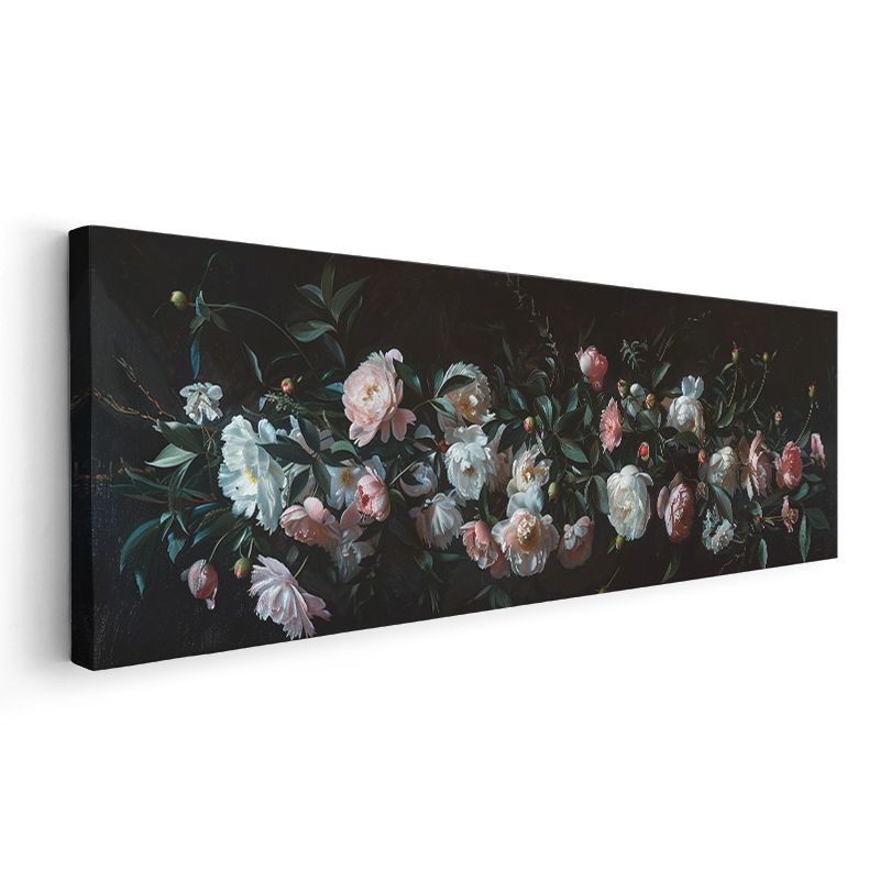 Zarif Güller - Klasik Yağlı Boya Tarzında Pembe ve Beyaz Gül Kompozisyonu Kanvas Tablo