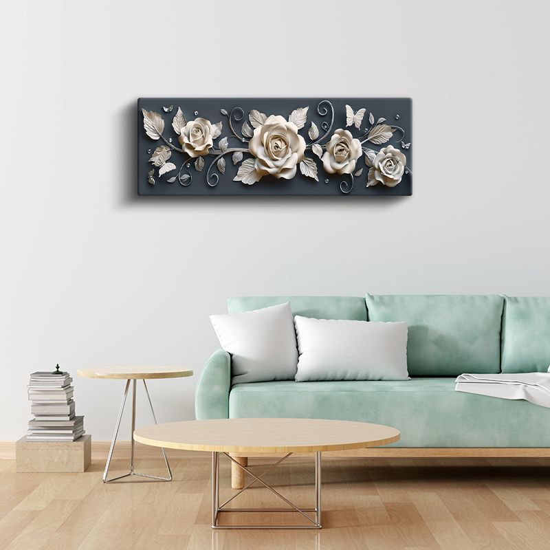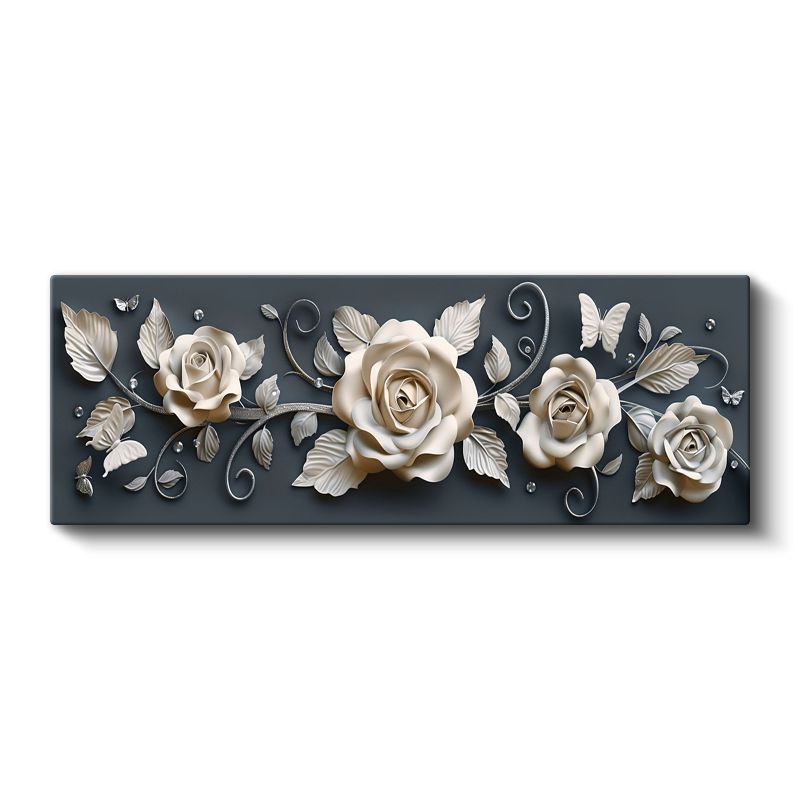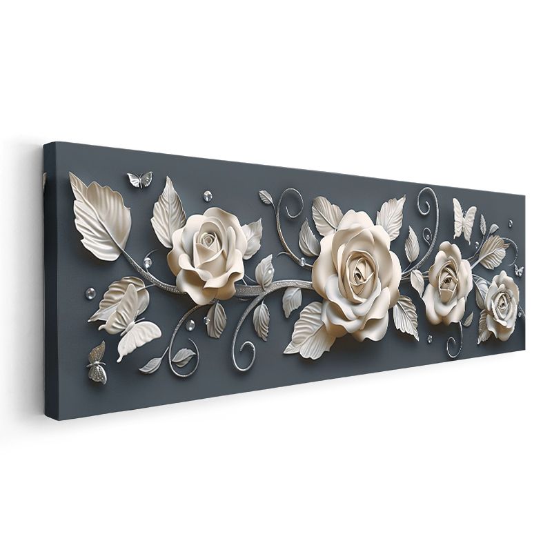 Zarif Güller - Koyu Gri Zeminde Kelebek Detaylı Kabartma Görünümlü Kanvas Tablo