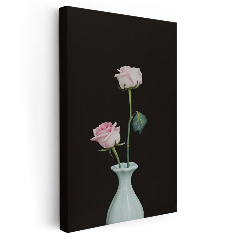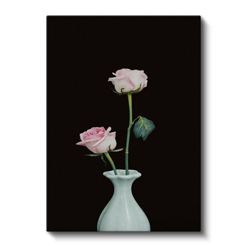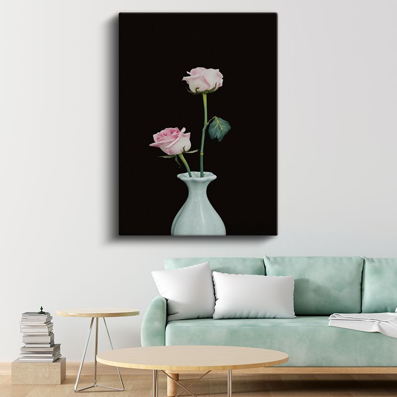 Zarif Güller - Minimal Siyah Zeminde Pembe Güller Kanvas Tablo