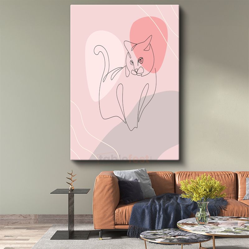 Zarif Kedi - İnce Çizgilerle Minimalist Portre Kanvas Tablo