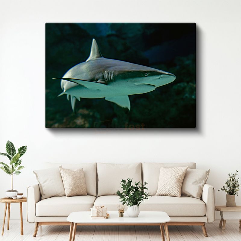 Zarif Köpekbalığı - Derin Yeşil Sularda Yüzüş Kanvas Tablo