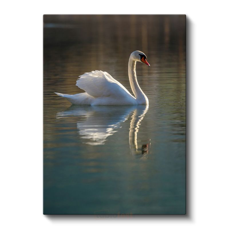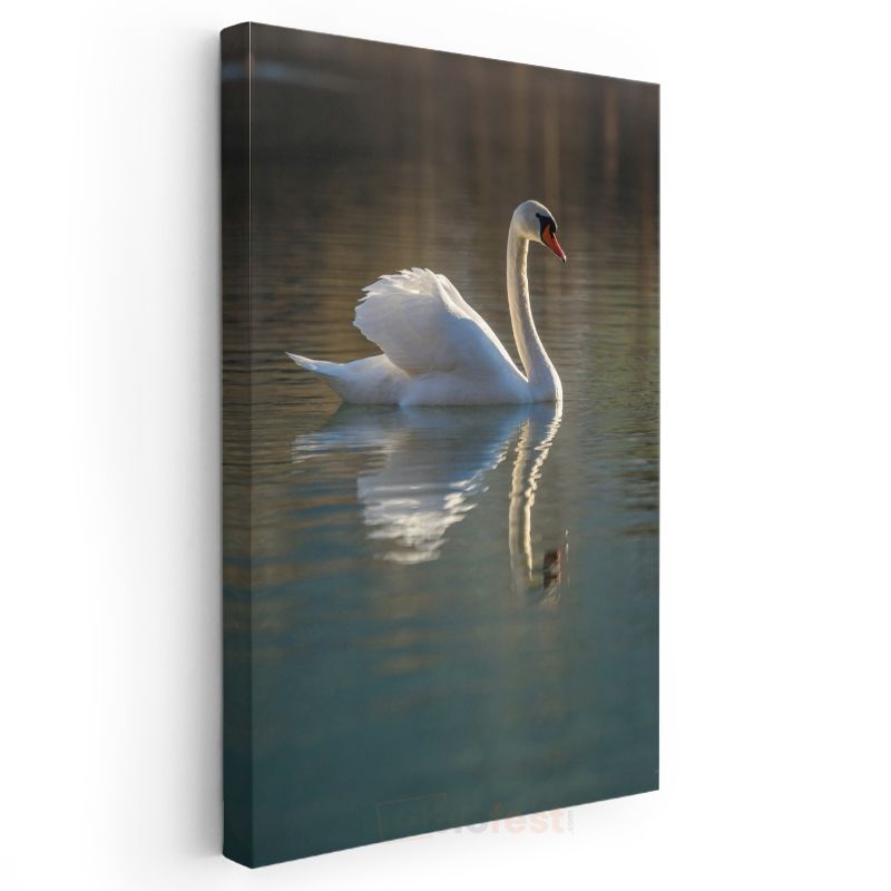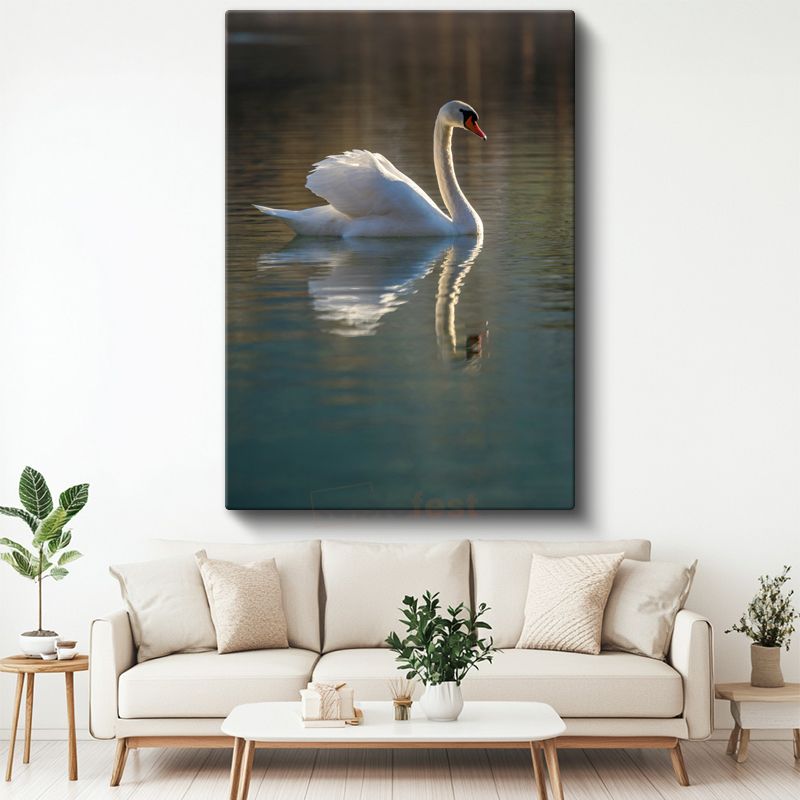 Zarif Kuğu - Sakin Suda Yansımalı Yüzüş Kanvas Tablo