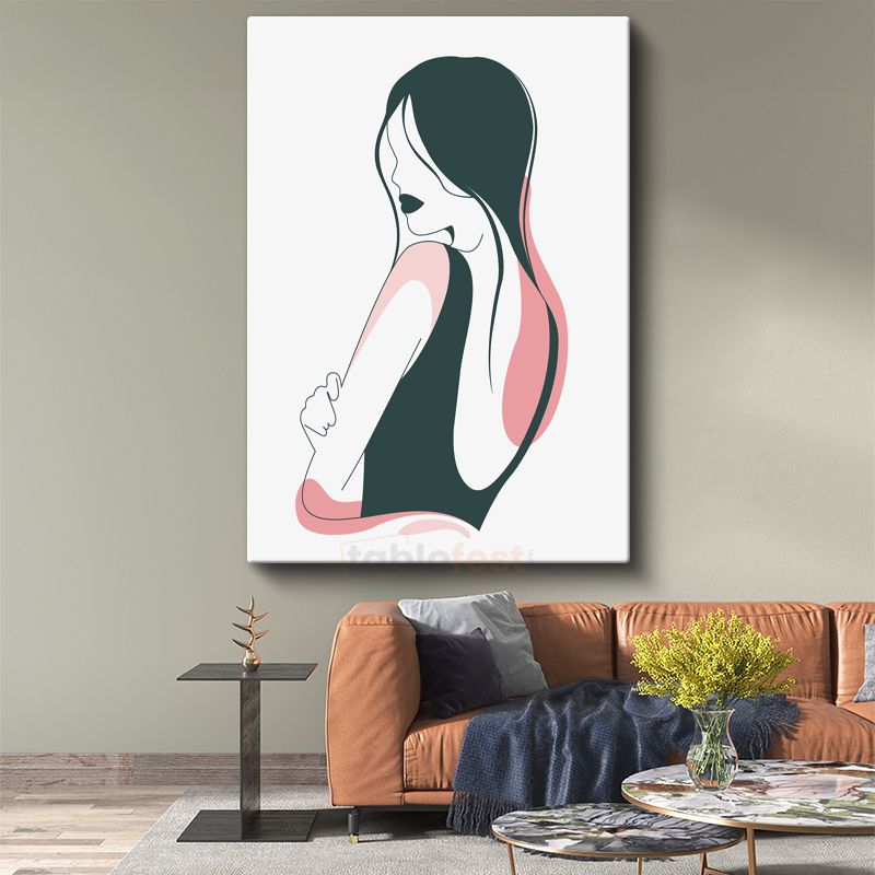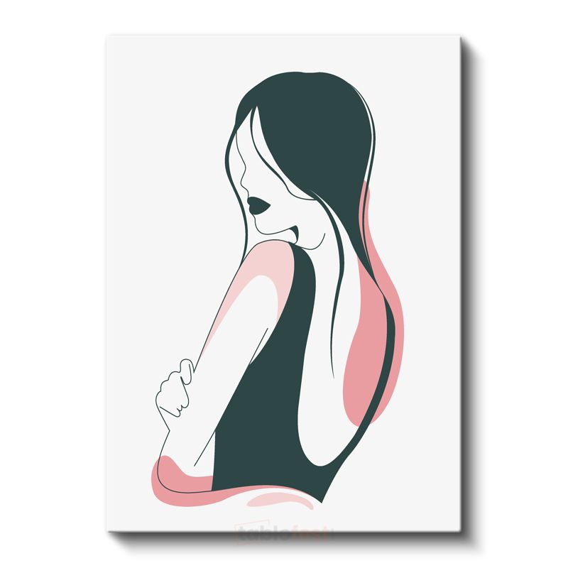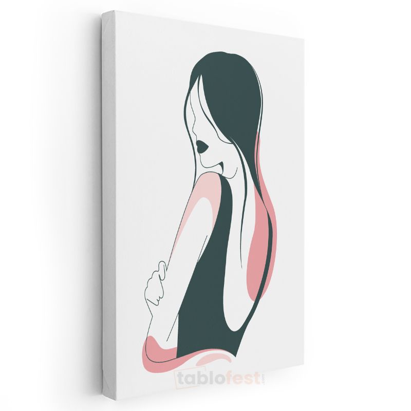 Zarif Profil - Pembe Tonlarında Minimalist Çizgi Sanatı Kanvas Tablo