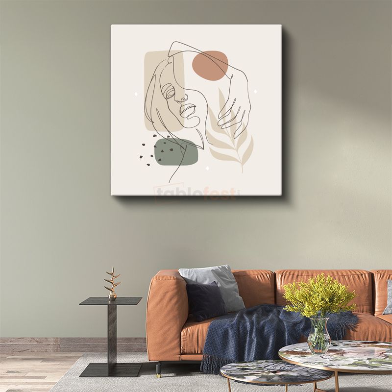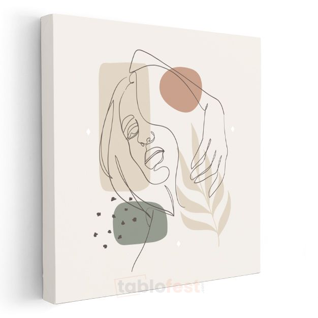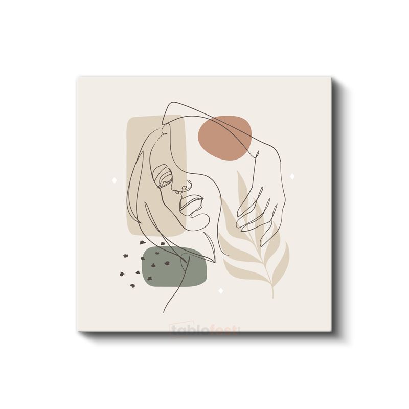 Zarif Profil - Yaprak Motifli Minimalist Çizgi Sanatı Kanvas Tablo