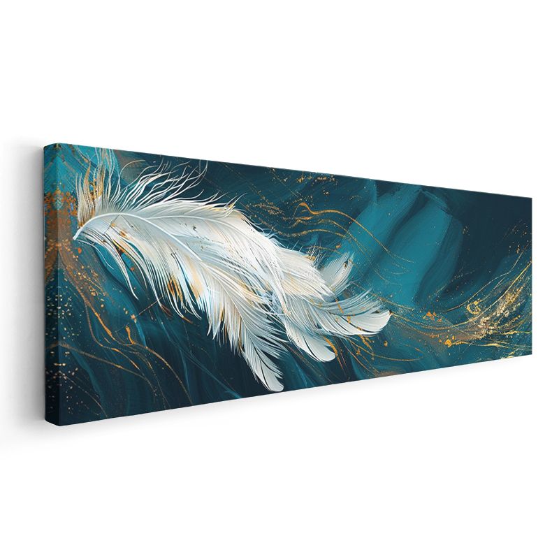Zarif Tüy - Turkuaz ve Altın Detaylı Soyut Kanvas Tablo