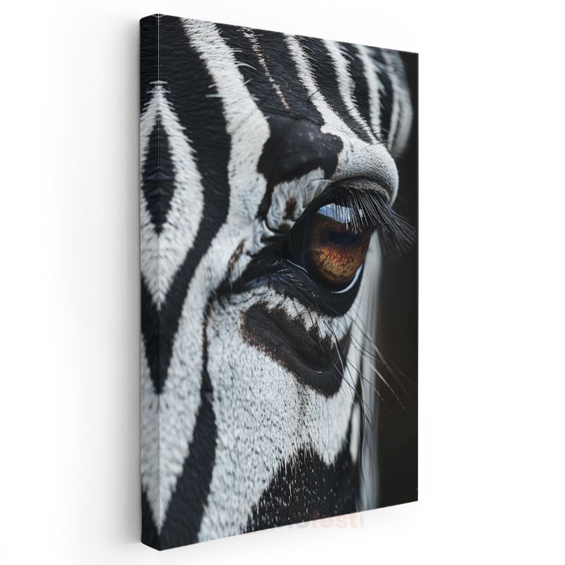 Zebra Gözü - Siyah Beyaz Desenlerde Kahverengi Bakış Kanvas Tablo