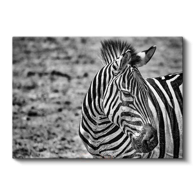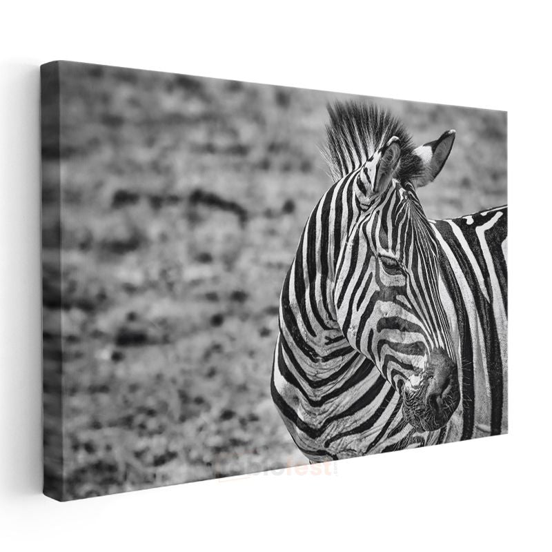 Zebra Profili - Siyah Beyaz Çizgili Portre Kanvas Tablo