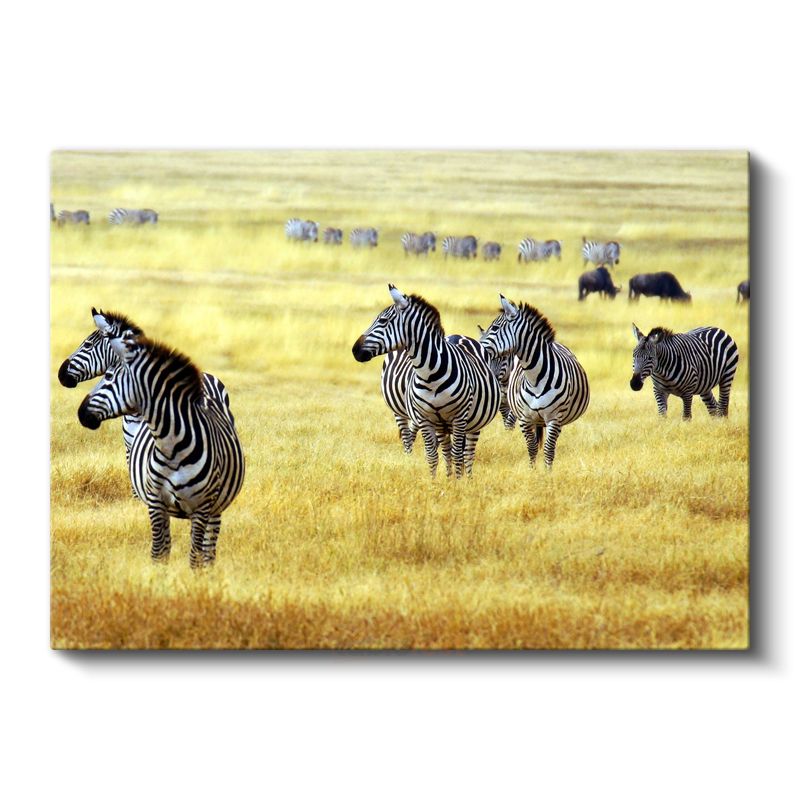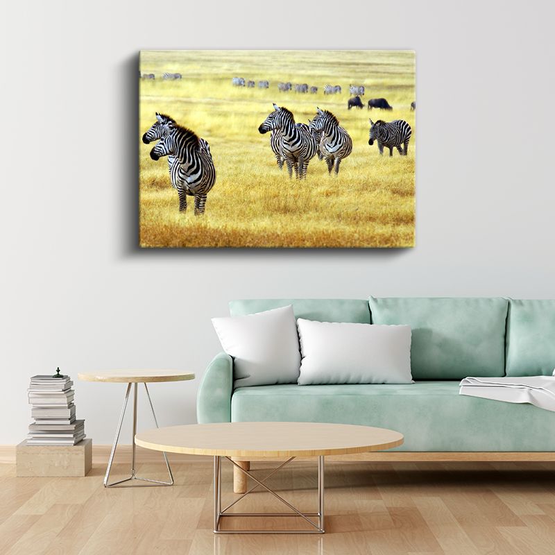 Zebra Sürüsü - Altın Sarısı Çayırlarda Afrika Vahşi Yaşamı Kanvas Tablo