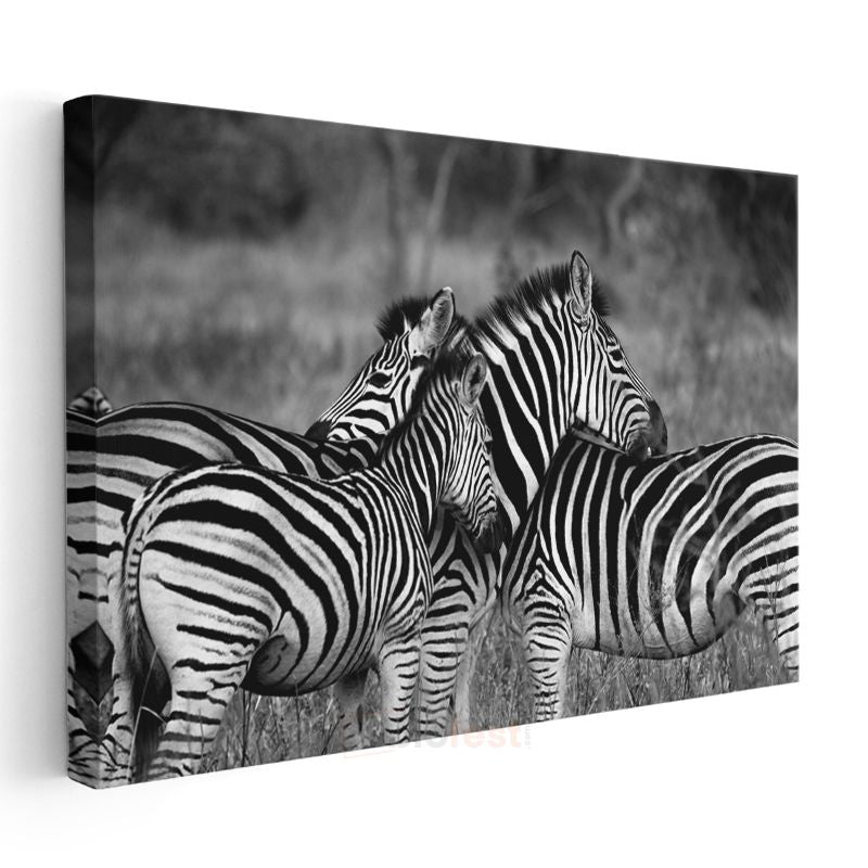 Zebra Sürüsü - Savanada Siyah Beyaz Uyum Kanvas Tablo