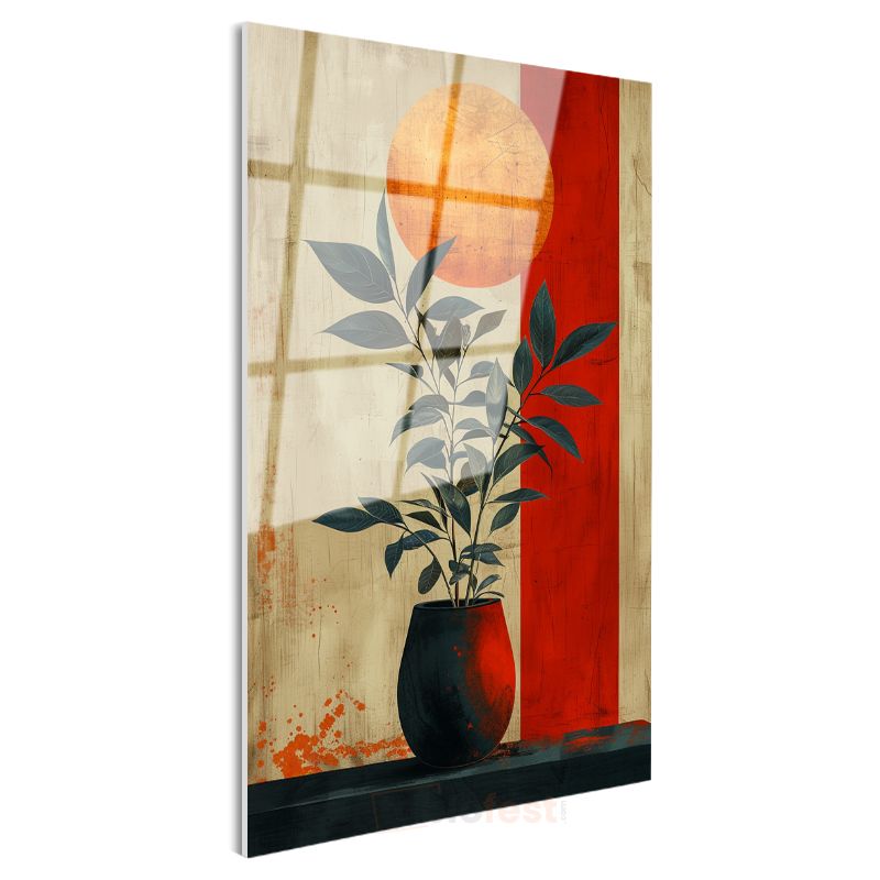 Zen Bitki - Modern Tarzda Saksıda Yapraklar Cam Tablo
