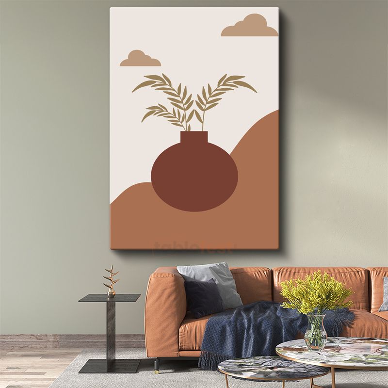 Zen Dengesi - Stilize Vazo ve Yapraklar Kompozisyonu Kanvas Tablo