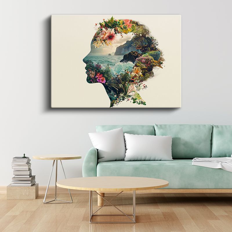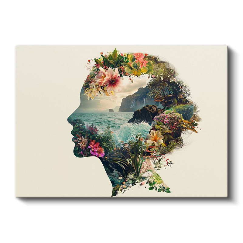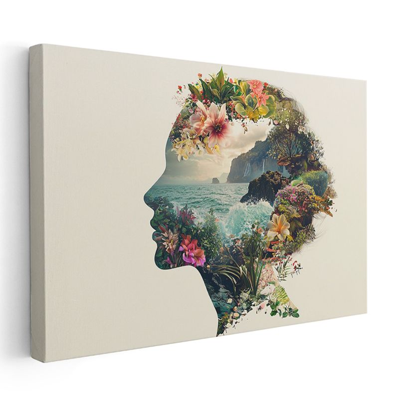Zihin Bahçesi - İnsan Silüetinde Doğa Manzarası Kanvas Tablo