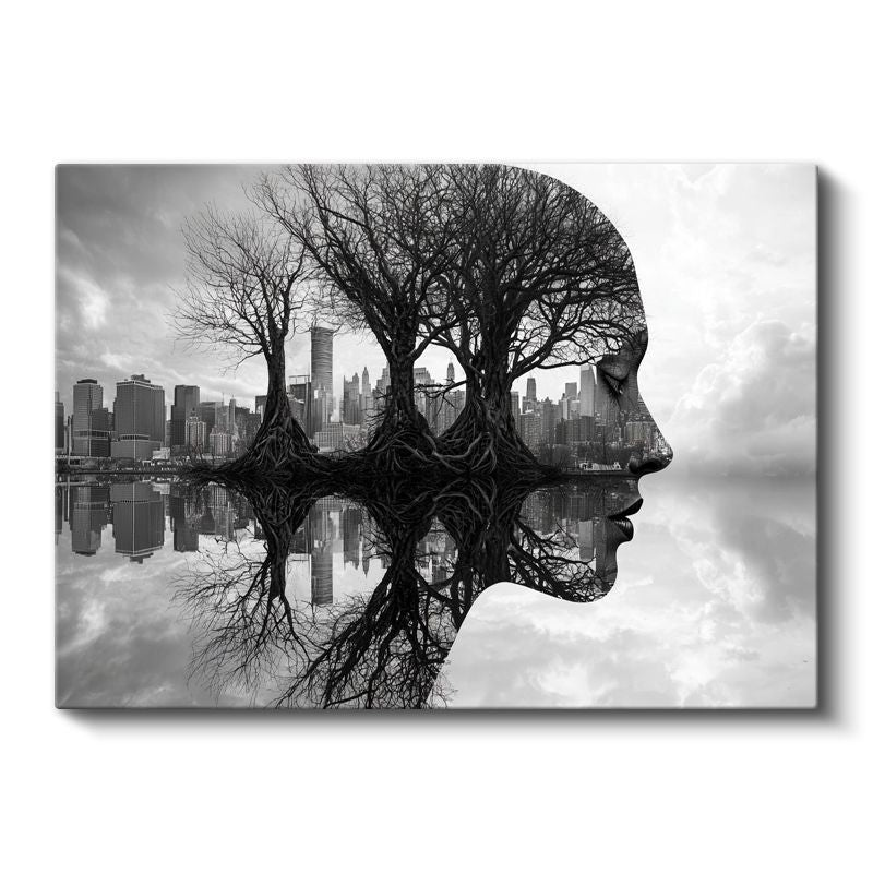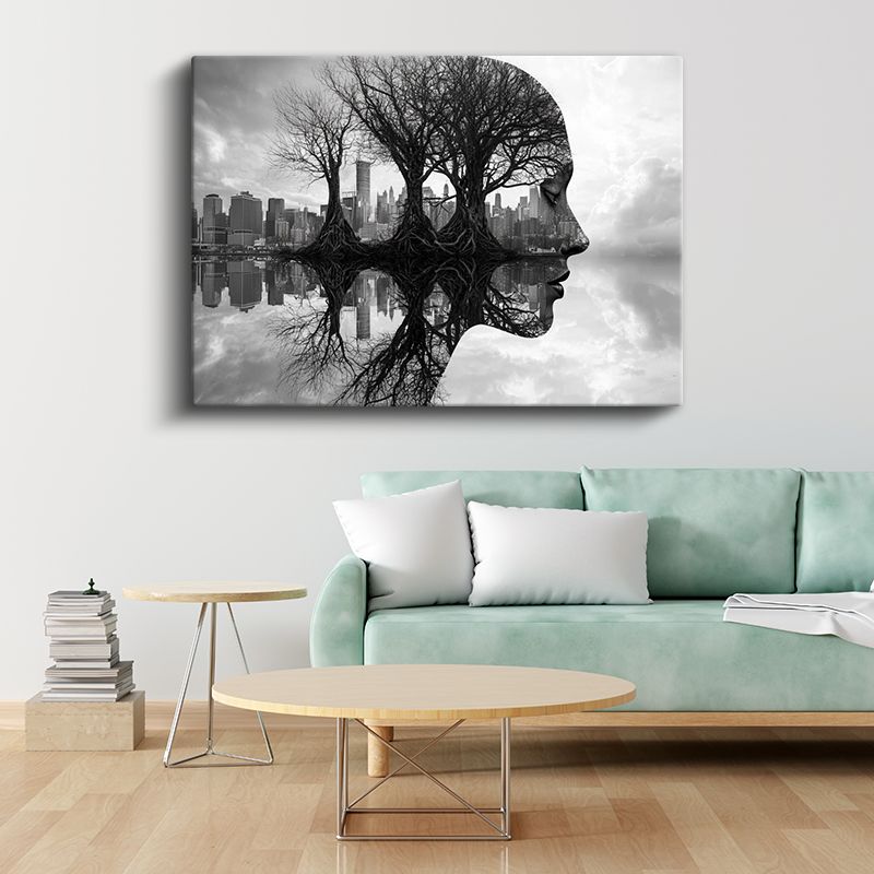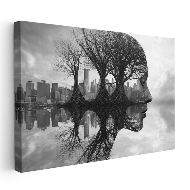 Zihin Ormanı - Ağaçlardan Oluşan İnsan Profili Kanvas Tablo