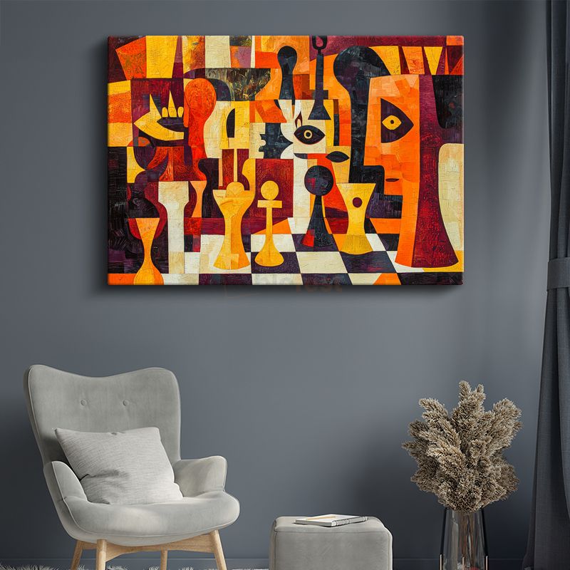 Zihin Satranç Tahtası - Geometrik Formlarla Soyutlanmış Yüzler Kanvas Tablo