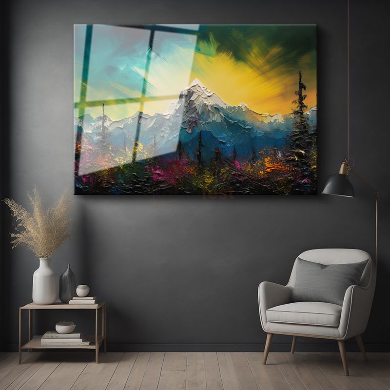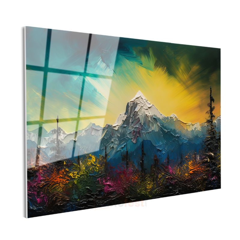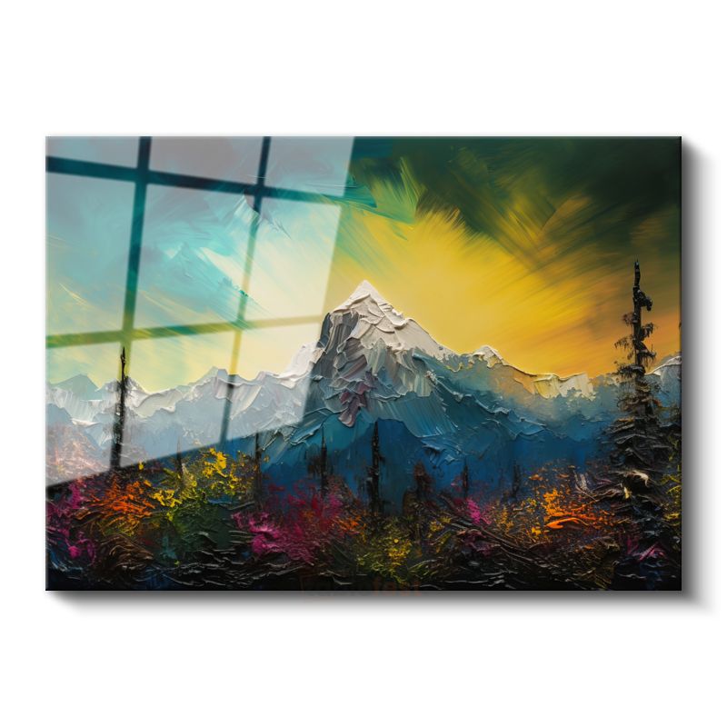 Zirve Işıltısı - Empresyonist Dağ Manzarası Cam Tablo