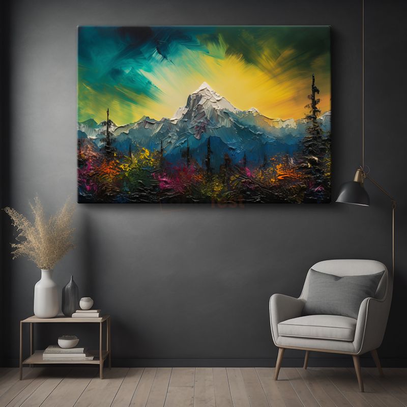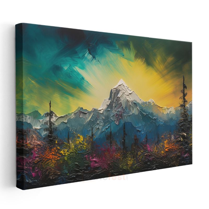 Zirve Işıltısı - Empresyonist Dağ Manzarası Kanvas Tablo