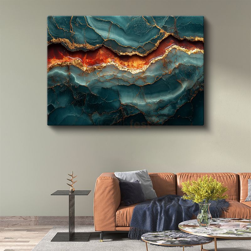 Zümrüt Altın Damarlar - Jeolojik Soyut Desen Kanvas Tablo