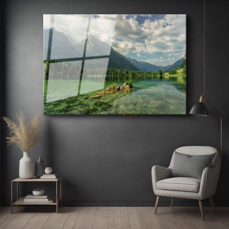 Zümrüt Göl - Kristal Berraklığında Dağ Gölü Cam Tablo