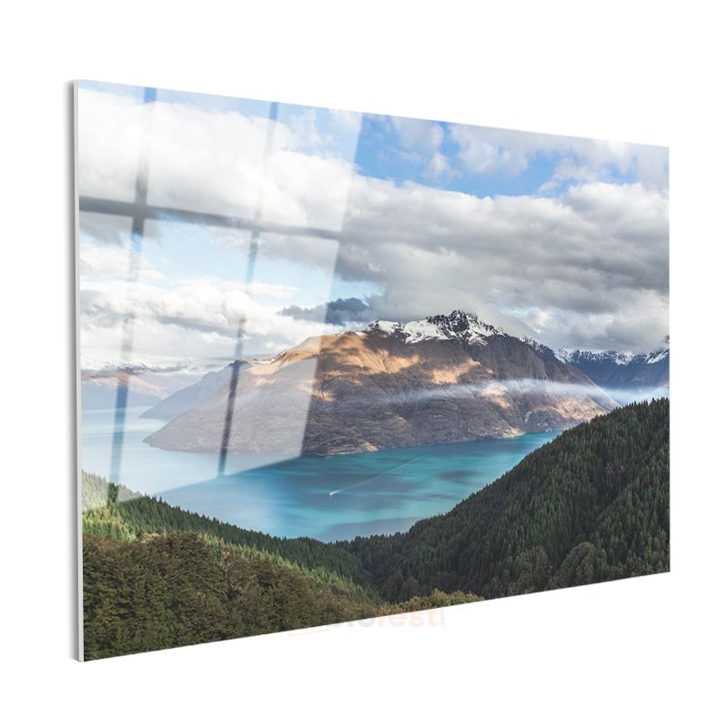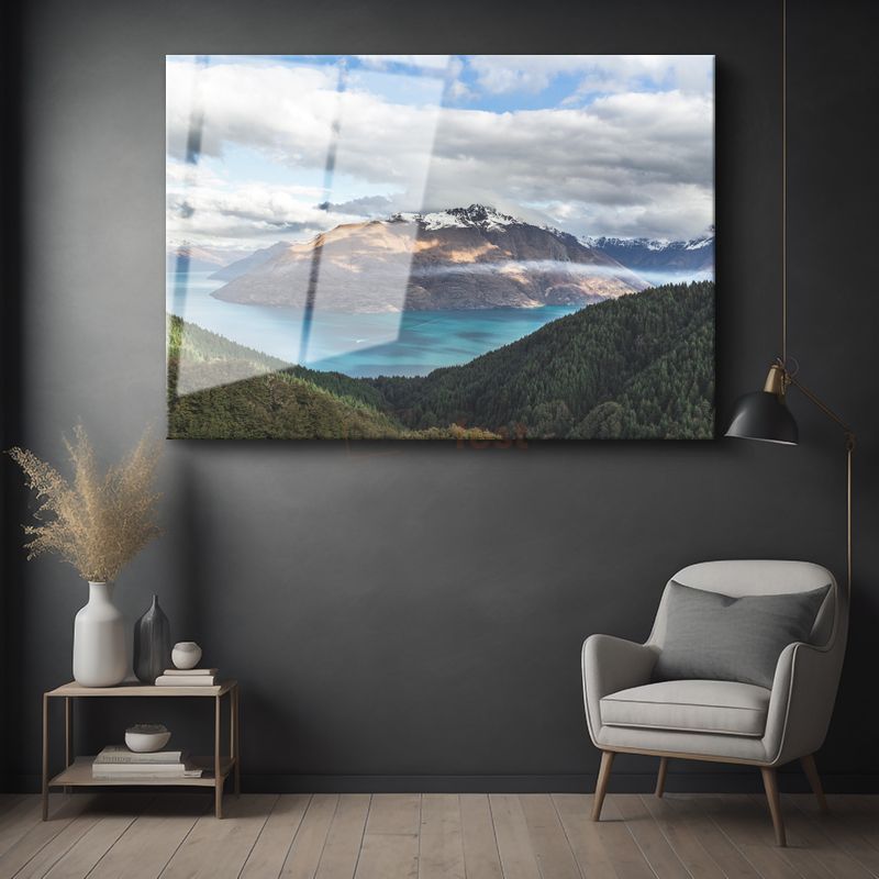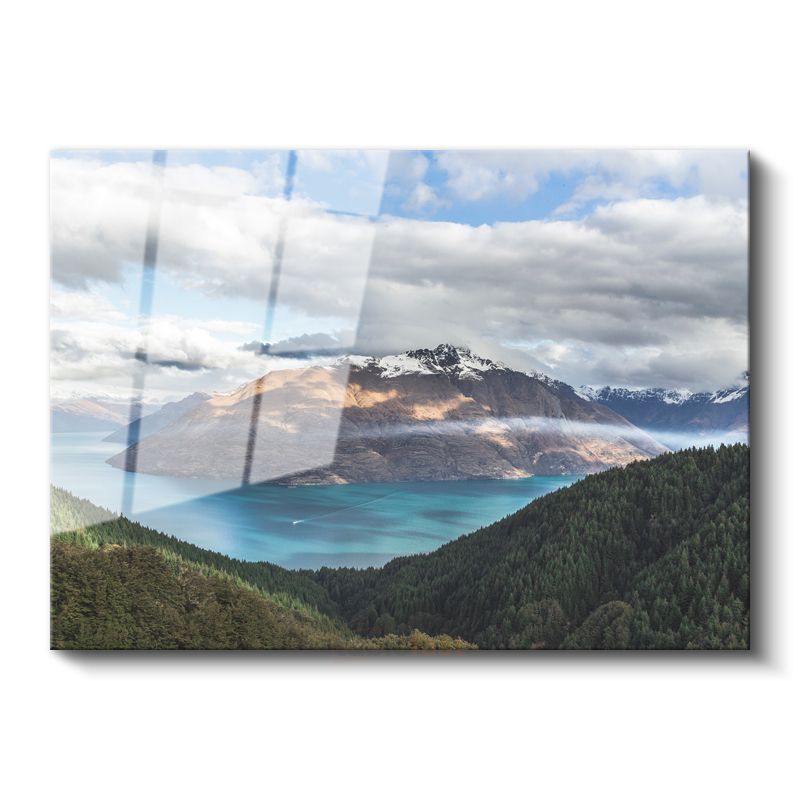 Zümrüt Göl Manzarası - Ormanla Çevrili Dağ Silsilesi Cam Tablo