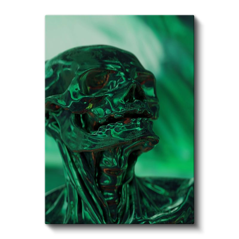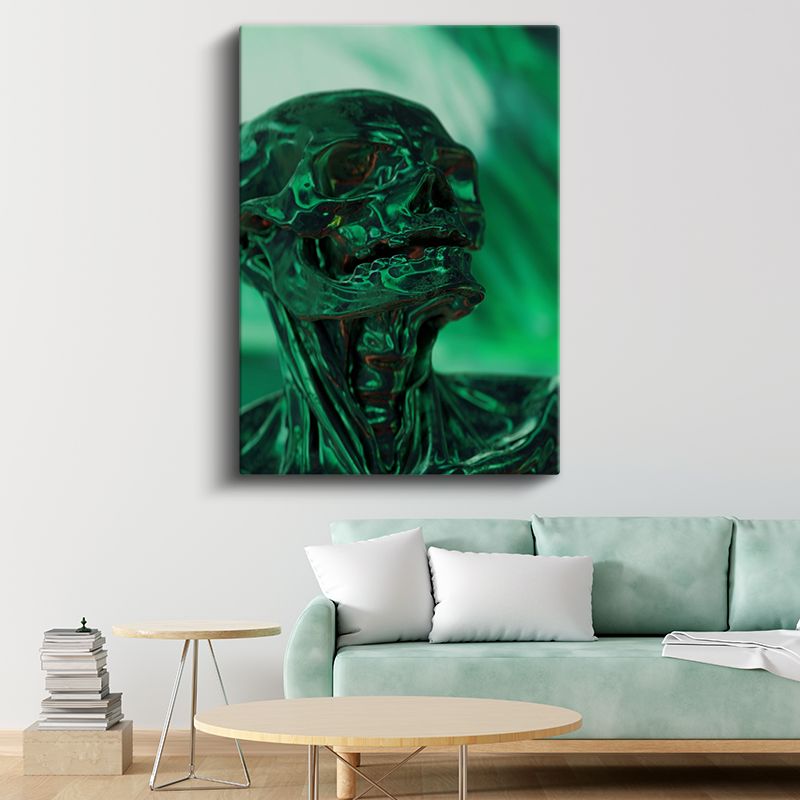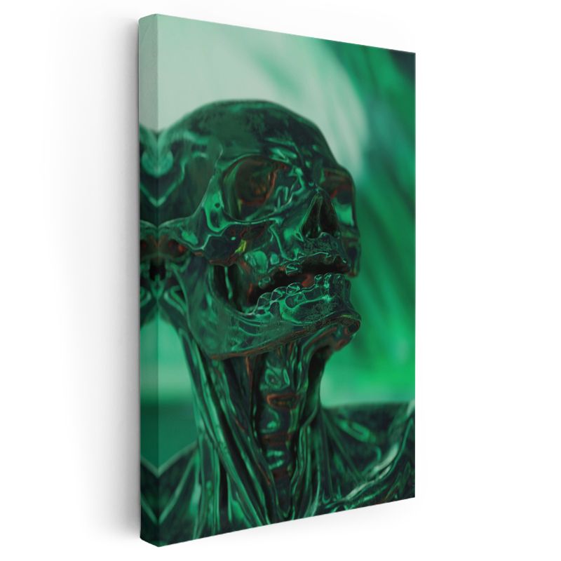 Zümrüt Kafatası - Metalik Yeşil Heykel Sanatı Kanvas Tablo