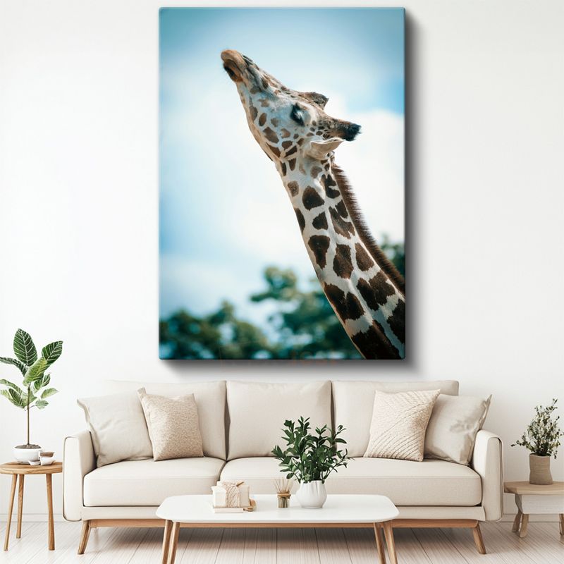 Zürafa Portresi - Gökyüzüne Uzanan Benekli Boyun Kanvas Tablo