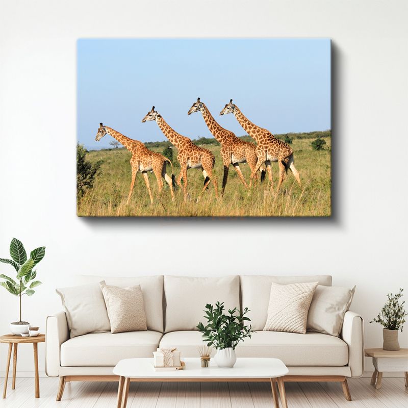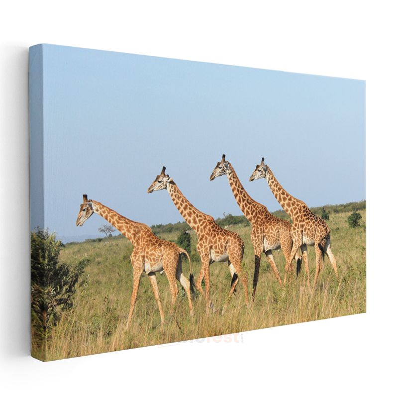 Zürafa Sürüsü - Savanada Yürüyen Dörtlü Kanvas Tablo